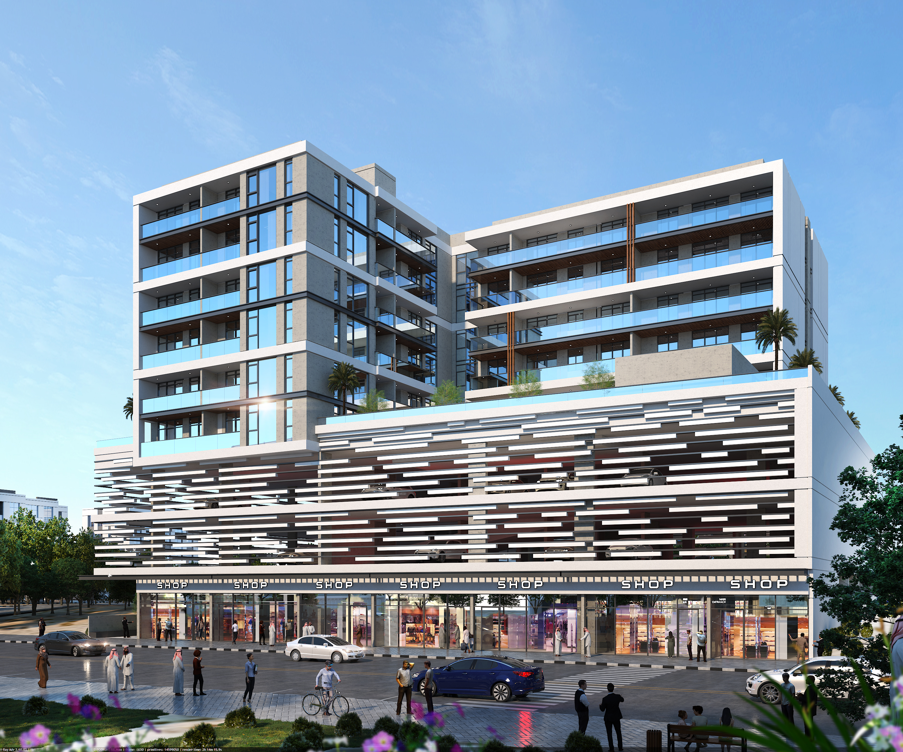 Scope of Work: A (G+2P+6) commercial & residential building, located in Nad Al Sheba , Dubai.