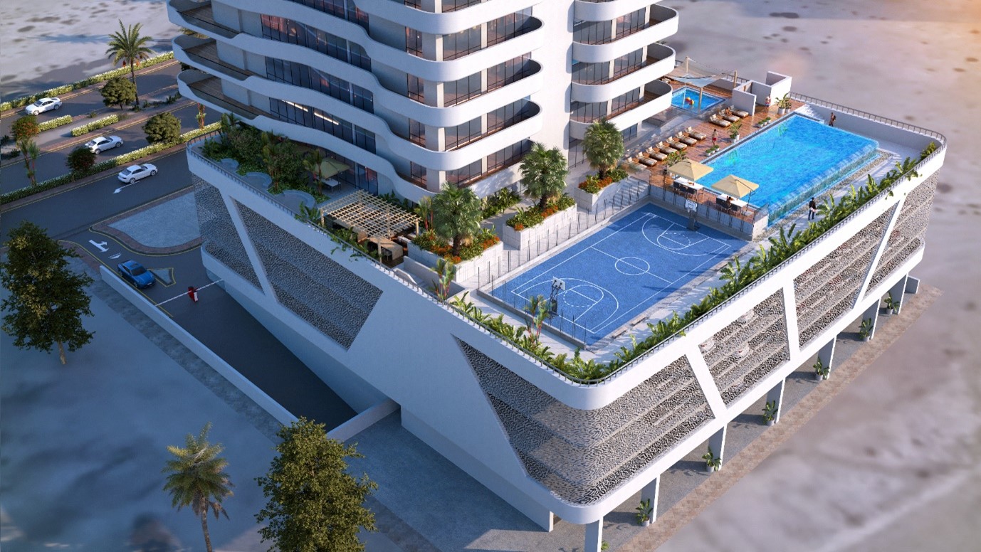 Scope of Work: A residential building consists of Basement, Ground,2 Podiums,21 Typical Floors & 2 Roofs, with a value of 122 M aed.